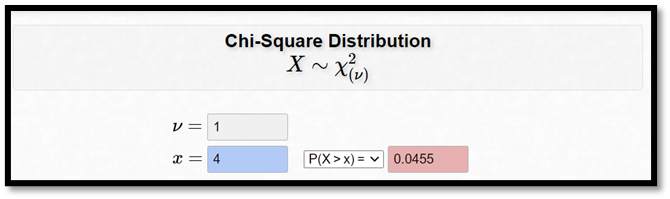 Vi kan nu se ut att chi2-värdet är 4: