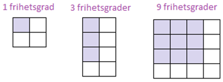 I exemplet med kön och partipreferens har vi alltså 1 frihetsgrad: