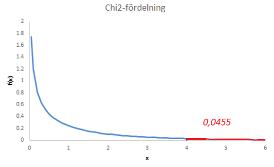 Figuren nedan illustrerar denna chi2-fördelning.