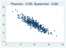 Pearsons korrelationskoefficient mäter styrkan i det linjära sambandet mellan två variabler; Spearmans rangkorrelation mäter styrkan i det monotona sambandet mellan två variabler: