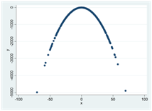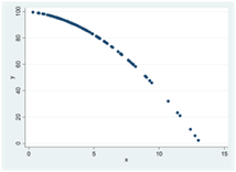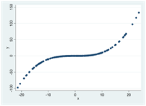 Om sambandet mellan två variabler beskrivs av en kurva (se nedan) så har Pearsons korrelationskoefficient värdet 0.