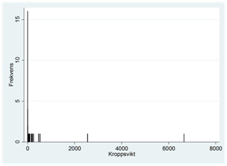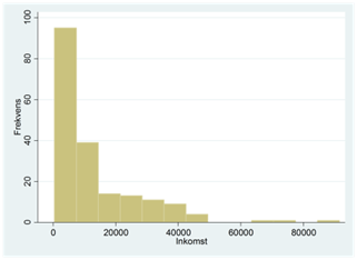 Exempel. Om vi ritar upp fördelningen för inkomster i världens länder så ser vi att det är fallet här: