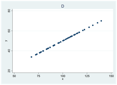 Diagram A visar ett datamaterial där korrelationen skulle ha varit perfekt om det inte vore för den ena avvikande observationen. Men denna har stort inflytande på Pearsons korrelationskoefficient som här har värdet 0,52; Spearmans rangkorrelation påverkas inte i lika hög grad utan har värdet 0,99.