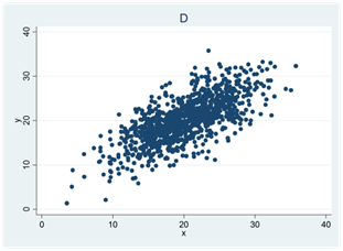 - Se spridningsdiagrammen nedan (A, B, C och D). I ett diagram är korrelationen 0,4; i ett annat 0; i ett tredje -0,5 och i ett fjärde 0,7. Para ihop rätt korrelationskoefficient med rätt spridningsdiagram.