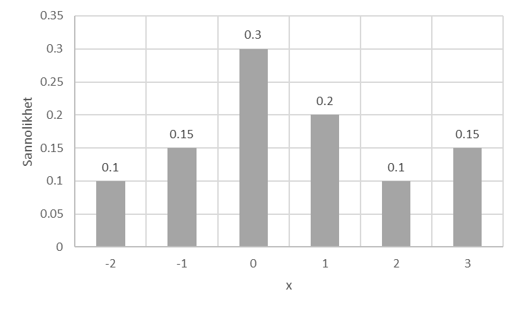 - Se sannolikhetsfördelningen nedan. Beräkna väntevärde och varians.