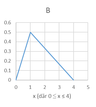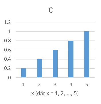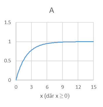 - En av nedanstående figurer är en sannolikhetsfördelning, två är kumulativa sannolikhetsfördelningar och en fjärde är varken eller. Ange för varje figur (A, B, C och D) vilken typ av fördelning det är frågan om.