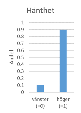 Exempel. Anta att 90 procent av befolkningen är högerhänta, vilket illustreras i populationsfördelningen nedan där högerhänta har värdet 1 och vänsterhänta värdet 0. Här gäller att populationsmedelvärdet ligger på 0,9; variansen och standardavvikelsen ligger på 0,09 respektive 0,3: