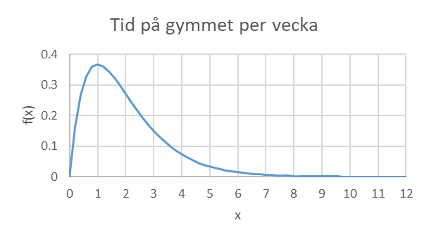 - Ett gym håller register över hur mycket salarna används av kunderna. Låt X beteckna tiden (i timmar per vecka) som en kund använder gymmet. Nedan ges sannolikhetsfördelningen för X samt den kumulativa fördelningsfunktionen.